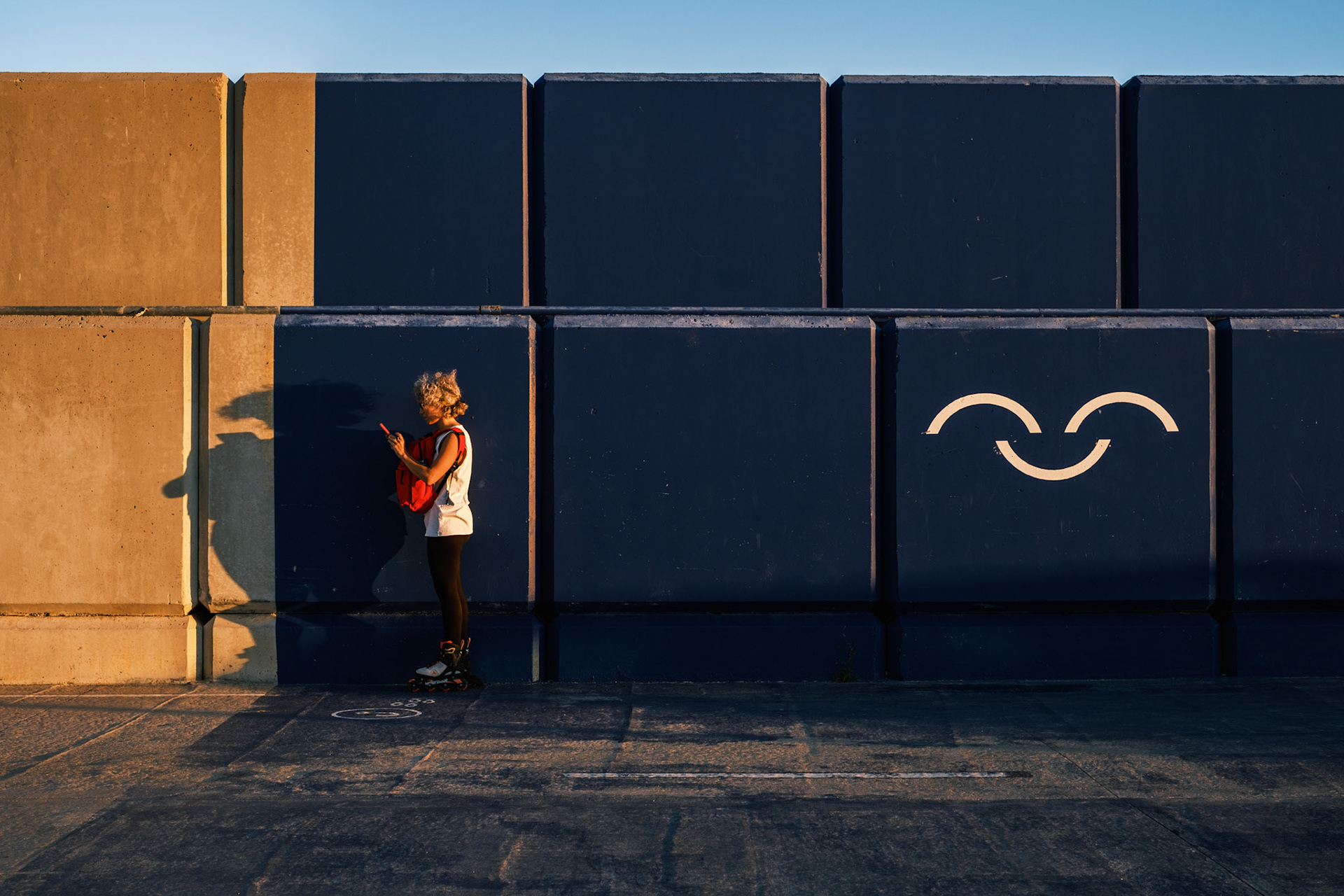 Veles e Vents building seen from the harbour shore with calm sea, Valencia Spain